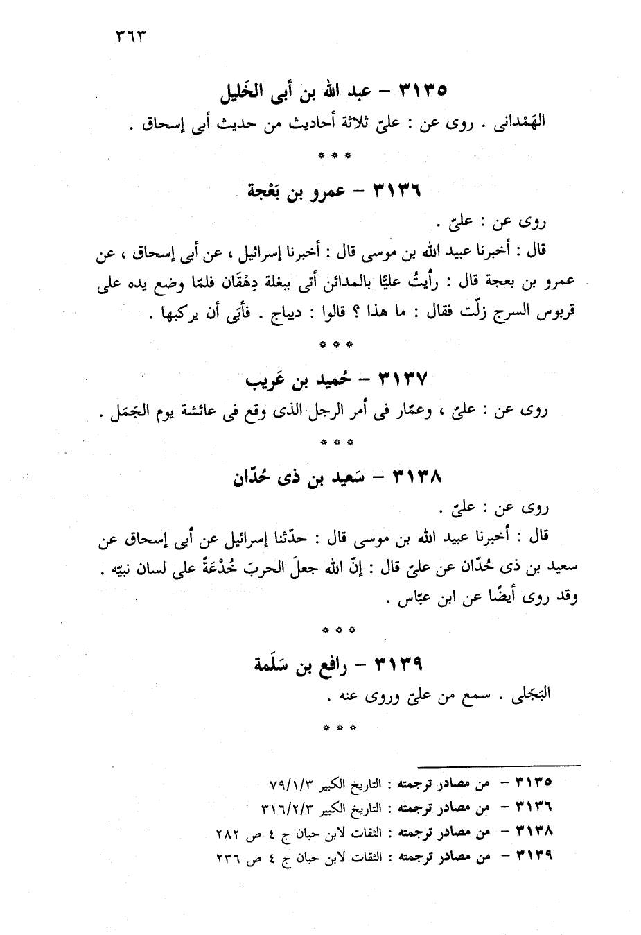٣١٣٩ - من مصادر ترجمته: الثقات لابن حبان ج ٤ ص ٢٣٦.