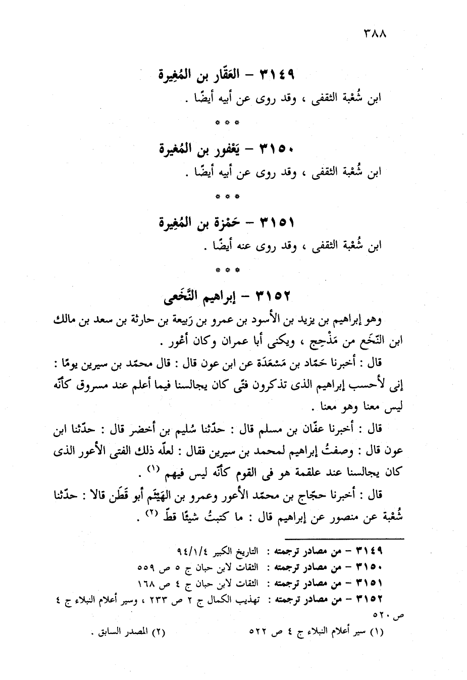 ٣١٥٢ - من مصادر ترجمته: تهذيب الكمال ج ٢ ص ٢٣٣، وسير أعلام النبلاء ج ٤ ص ٥٢٠.