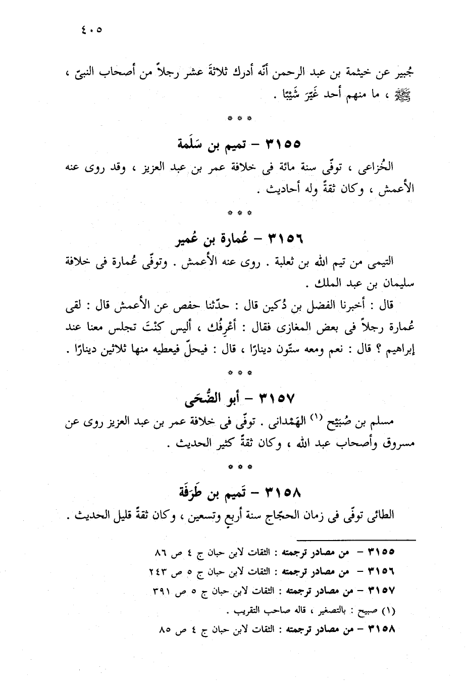 ٣١٥٦ - من مصادر ترجمته: الثقات لابن حبان ج ٥ ص ٢٤٣.
