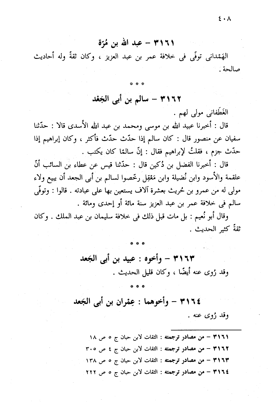 ٣١٦١ - من مصادر ترجمته: الثقات لابن حبان ج ٥ ص ١٨.