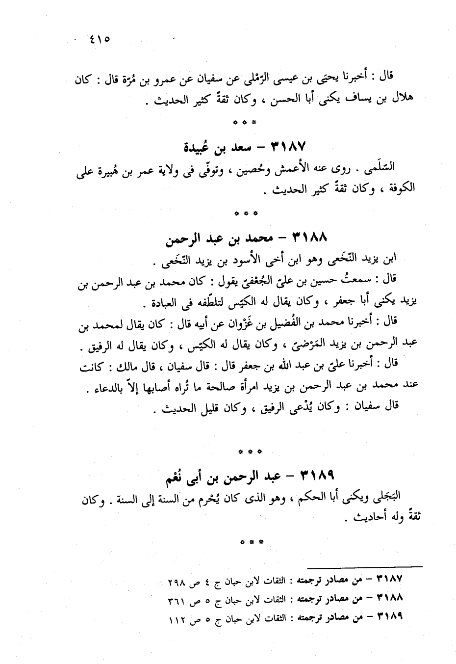٣١٨٩ - من مصادر ترجمته: الثقات لابن حبان ج ٥ ص ١١٢.