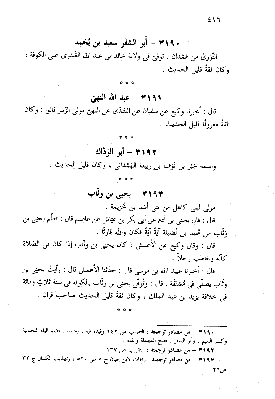 ٣١٩٣ - من مصادر ترجمته: الثقات لابن حبان ج ٥ ص ٥٢٠، وتهذيب الكمال ج ٣٢ ص ٢٦.