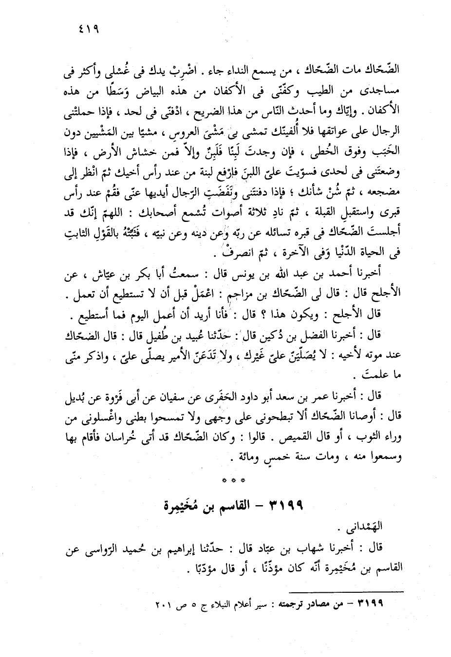 ٣١٩٩ - من مصادر ترجمته: سير أعلام النبلاء ج ٥ ص ٢٠١.