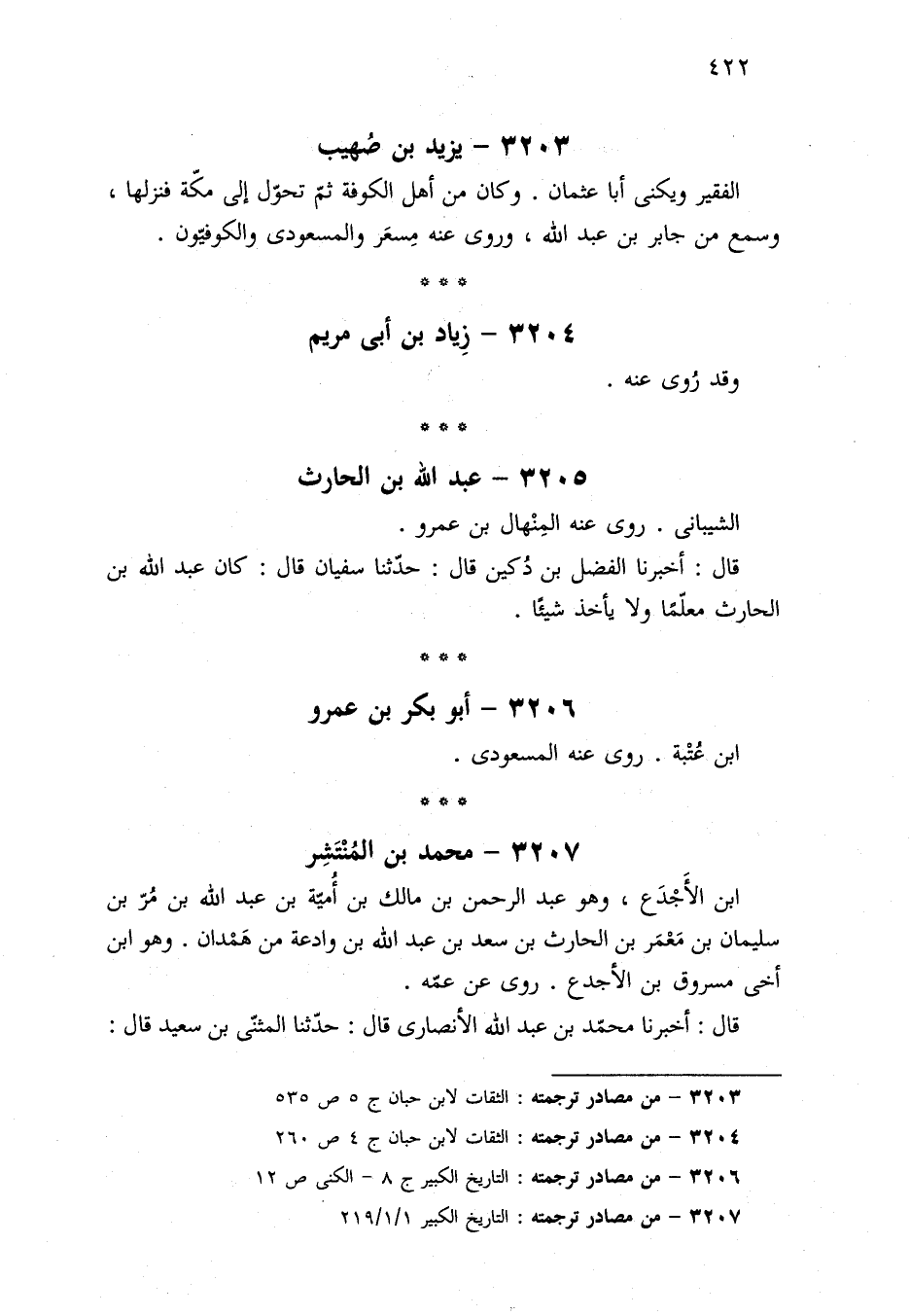 ٣٢٠٤ - من مصادر ترجمته: الثقات لابن حبان ج ٤ ص ٢٦٠.