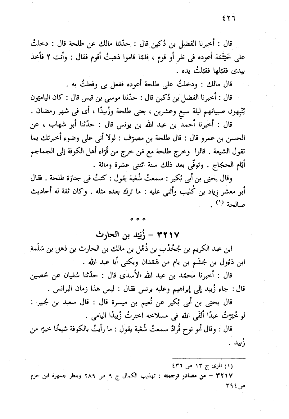 ٣٢١٧ - من مصادر ترجمته: تهذيب الكمال ج ٩ ص ٢٨٩ وينظر جمهرة ابن حزم ص ٣٩٤.