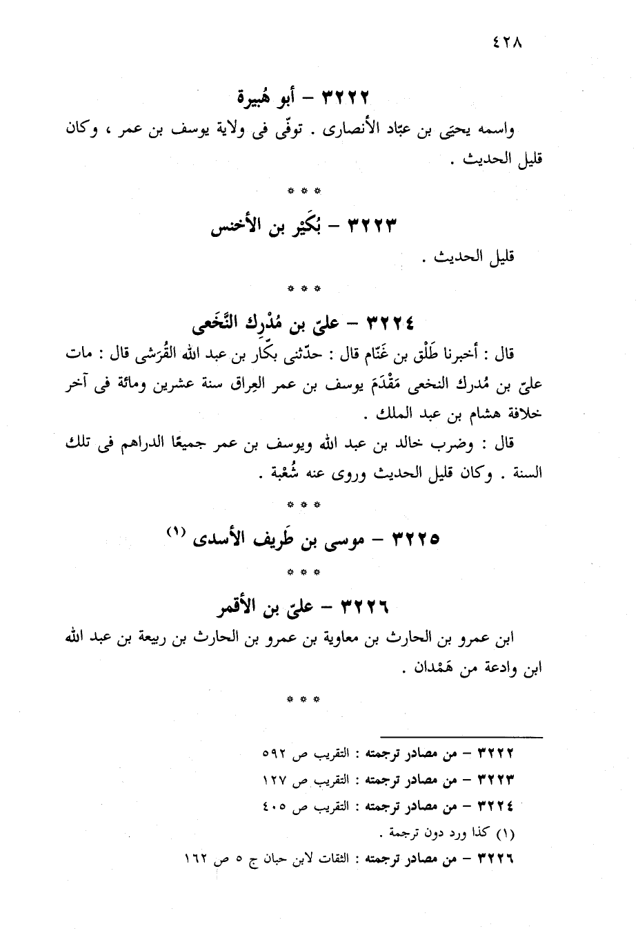 ٣٢٢٦ - من مصادر ترجمته: الثقات لابن حبان ج ٥ ص ١٦٢.