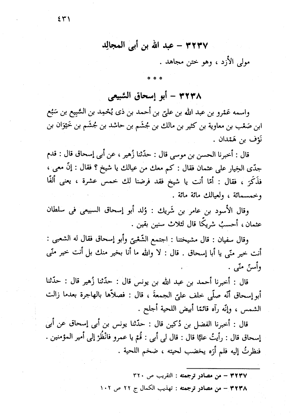 ٣٢٣٨ - من مصادر ترجمته: تهذيب الكمال ج ٢٢ ص ١٠٢.