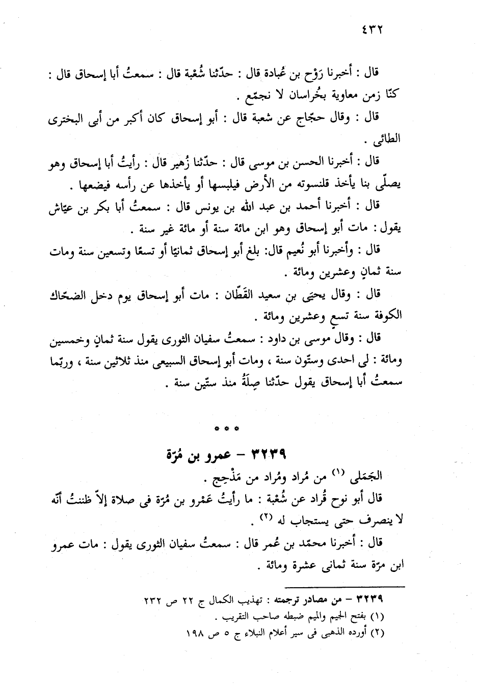 ٣٢٣٩ - من مصادر ترجمته: تهذيب الكمال ج ٢٢ ص ٢٣٢.