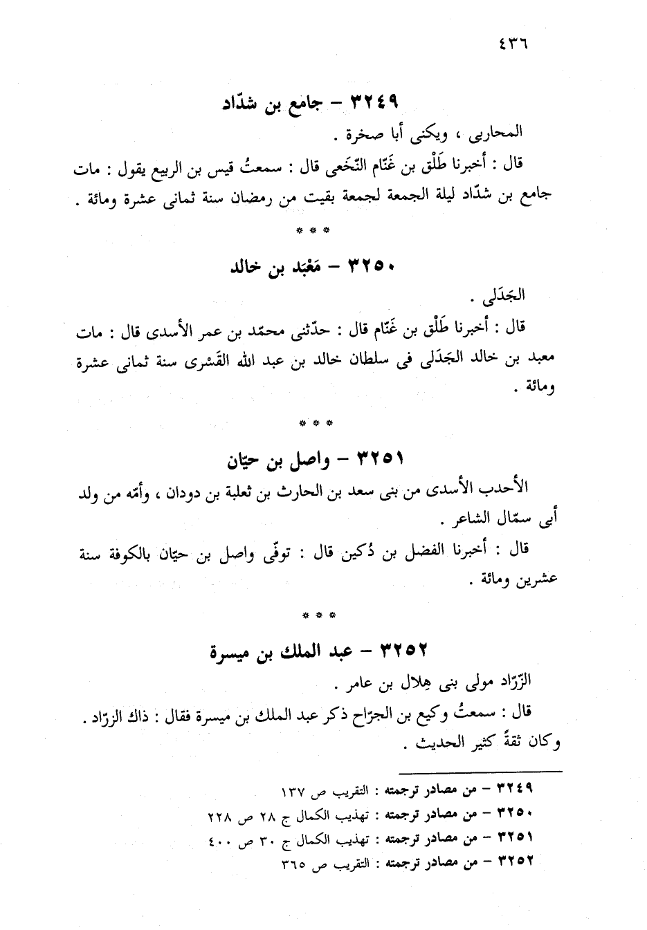 ٣٢٥٠ - من مصادر ترجمته: تهذيب الكمال ج ٢٨ ص ٢٢٨.