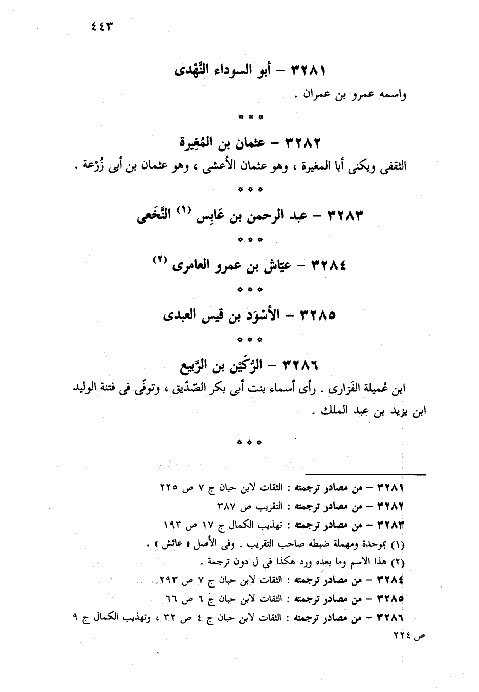 ٣٢٨٦ - من مصادر ترجمته: الثقات لابن حبان ج ٤ ص ٣٢، وتهذيب الكمال ج ٩ ص ٢٢٤.