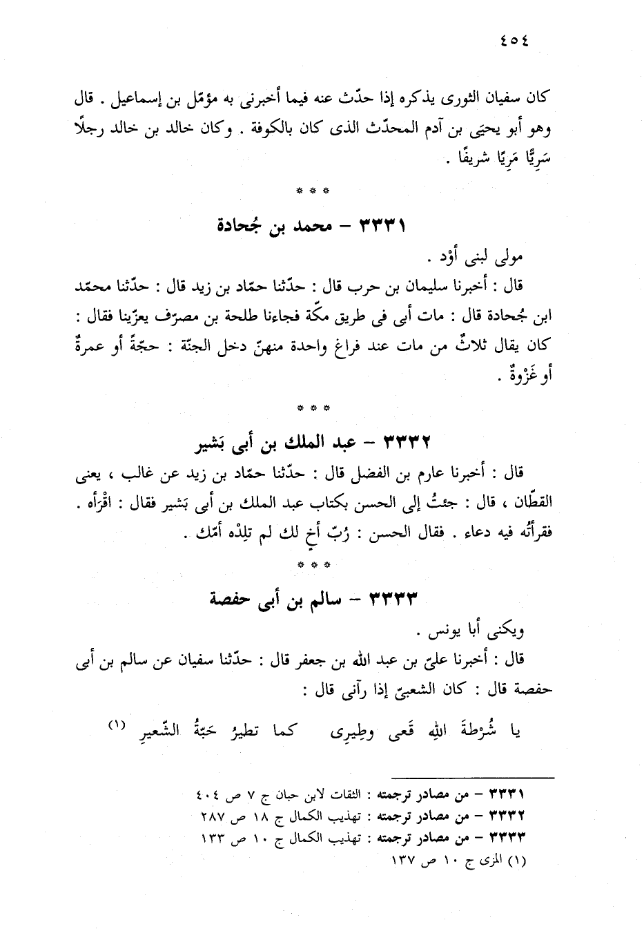٣٣٣٣ - من مصادر ترجمته: تهذيب الكمال ج ١٠ ص ١٣٣.