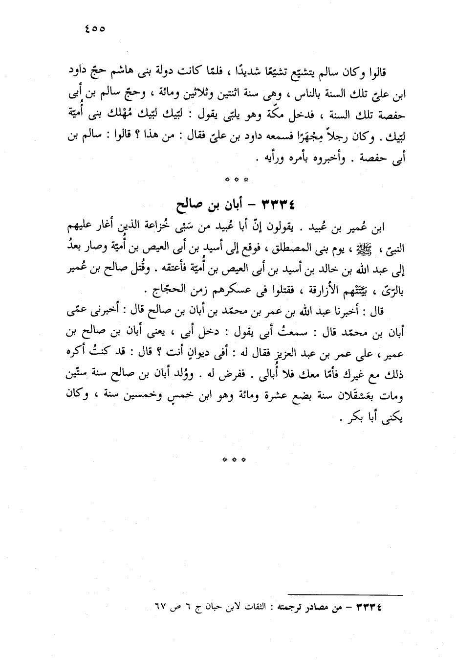 ٣٣٣٤ - من مصادر ترجمته: الثقات لابن حبان ج ٦ ص ٦٧.