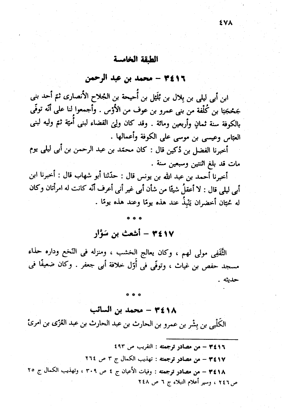 ٣٤١٨ - من مصادر ترجمته: وفيات الأعيان ج ٤ ص ٣٠٩، وتهذيب الكمال ج ٢٥ ص ٢٤٦، وسير أعلام النبلاء ج ٦ ص ٢٤٨.