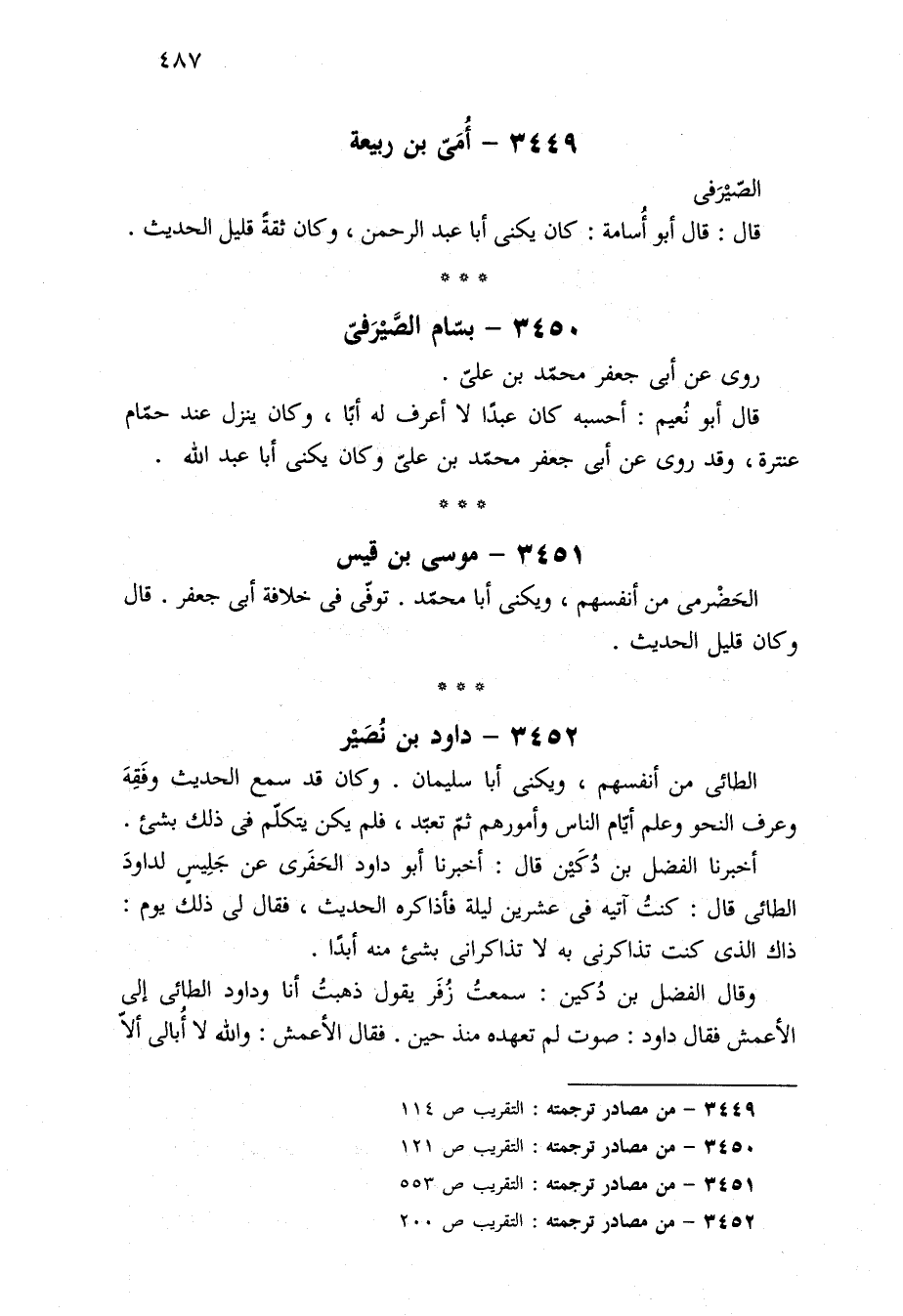 ٣٤٤٩ - من مصادر ترجمته: التقريب ص ١١٤.