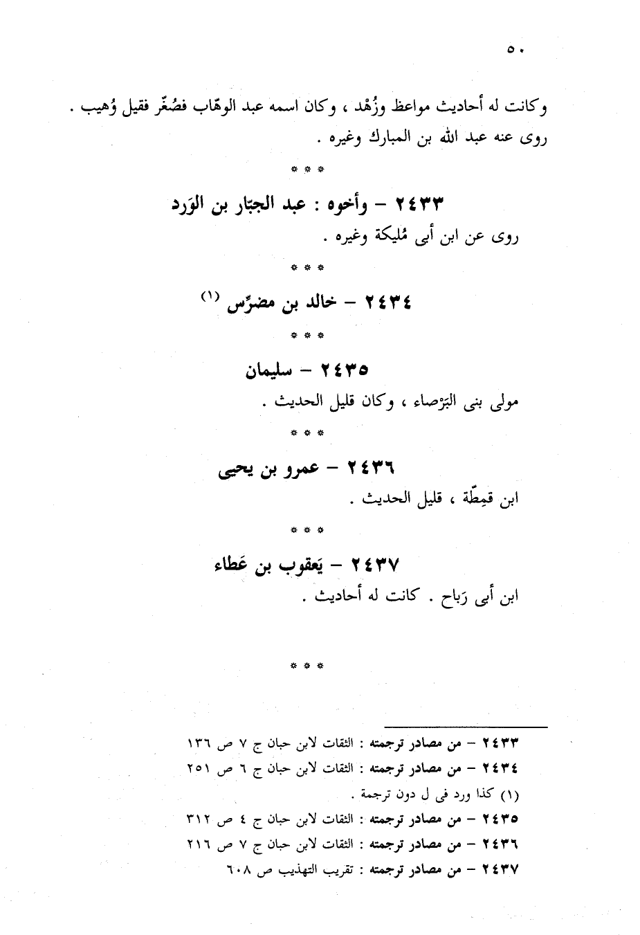 ٢٤٣٣ - من مصادر ترجمته: الثقات لابن حبان ج ٧ ص ١٣٦