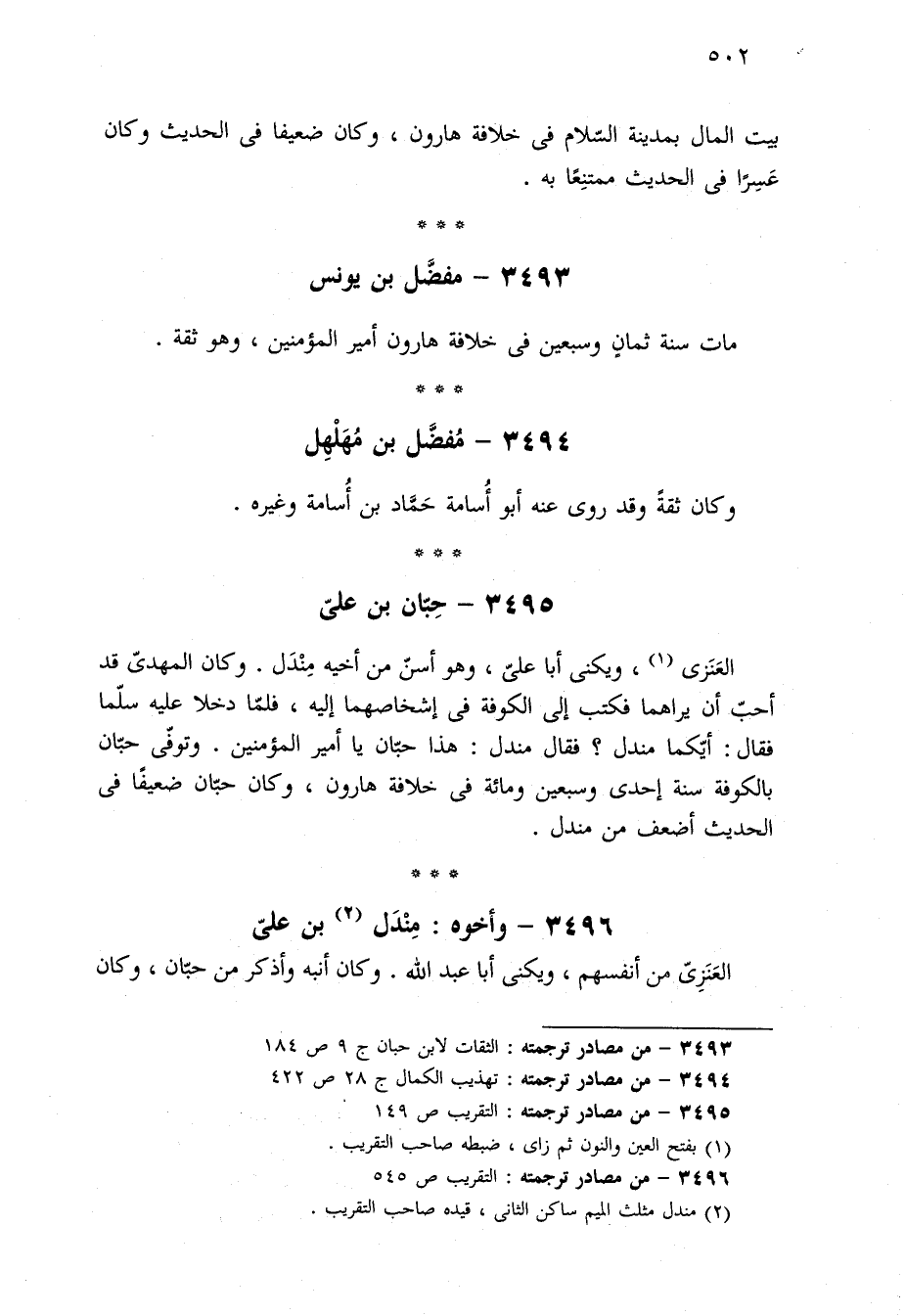 ٣٤٩٤ - من مصادر ترجمته: تهذيب الكمال ج ٢٨ ص ٤٢٢.