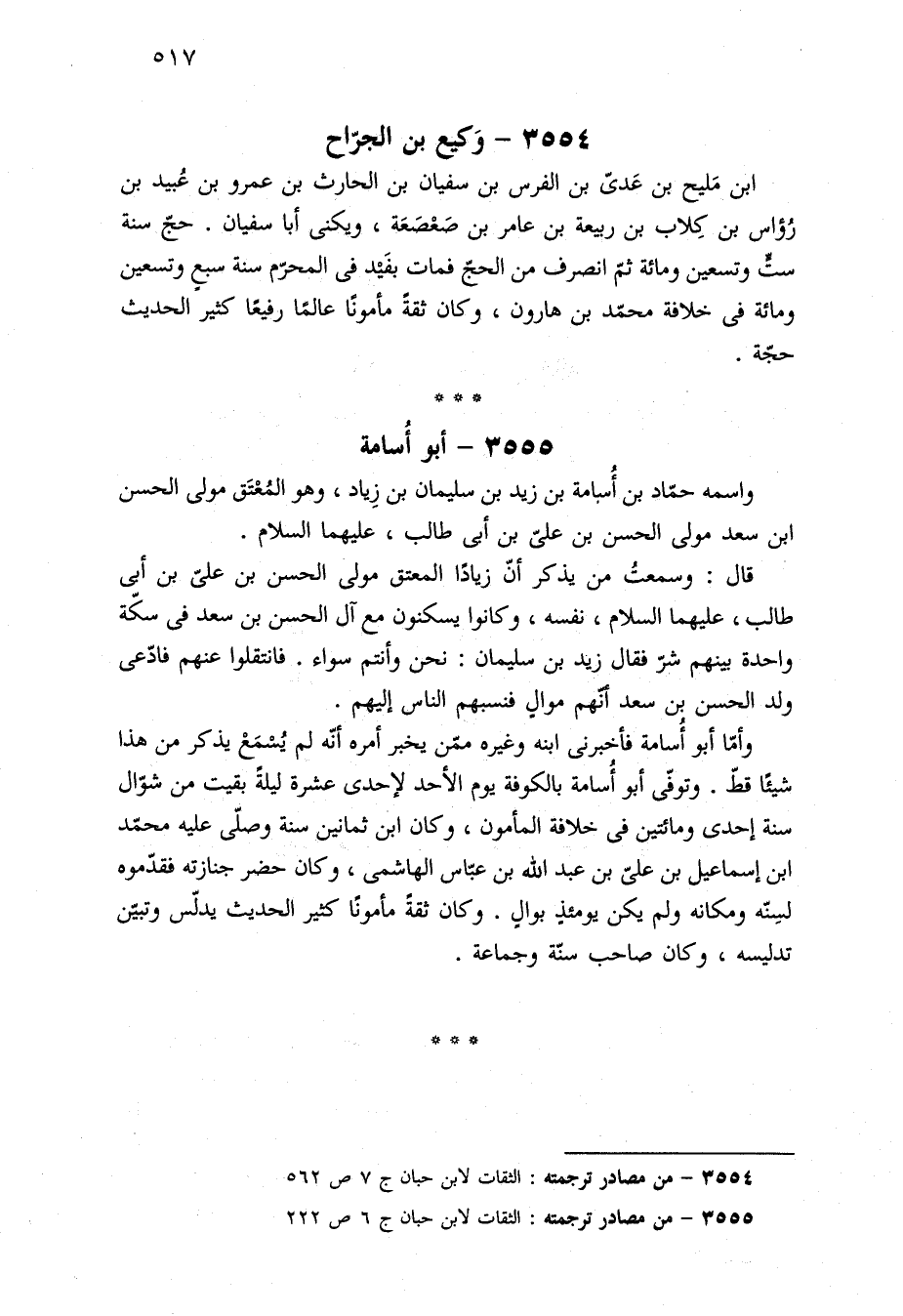 ٣٥٥٤ - من مصادر ترجمته: الثقات لابن حبان ج ٧ ص ٥٦٢.