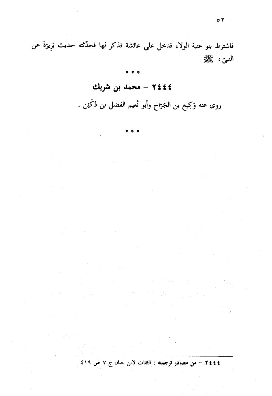 ٢٤٤٤ - من مصادر ترجمته: الثقات لابن حبان ج ٧ ص ٤١٩