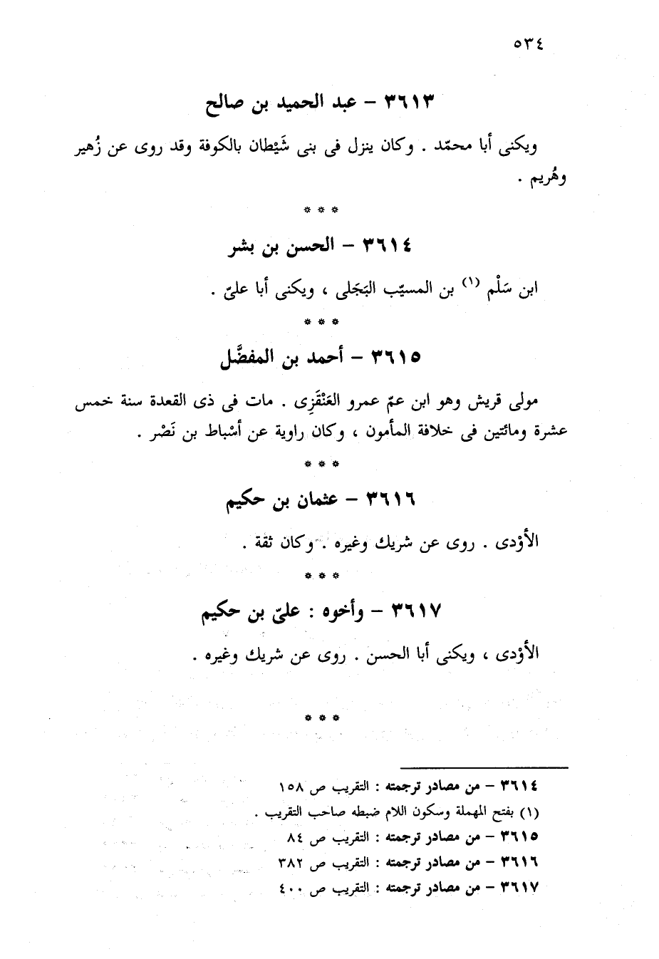 ٣٦١٤ - من مصادر ترجمته: التقريب ص ١٥٨.