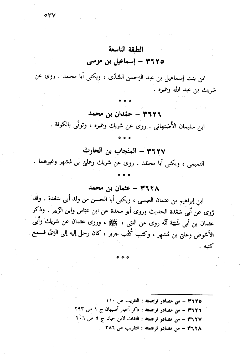 ٣٦٢٧ - من مصادر ترجمته: الثقات لابن حبان ج ٩ ص ٢٠٦.