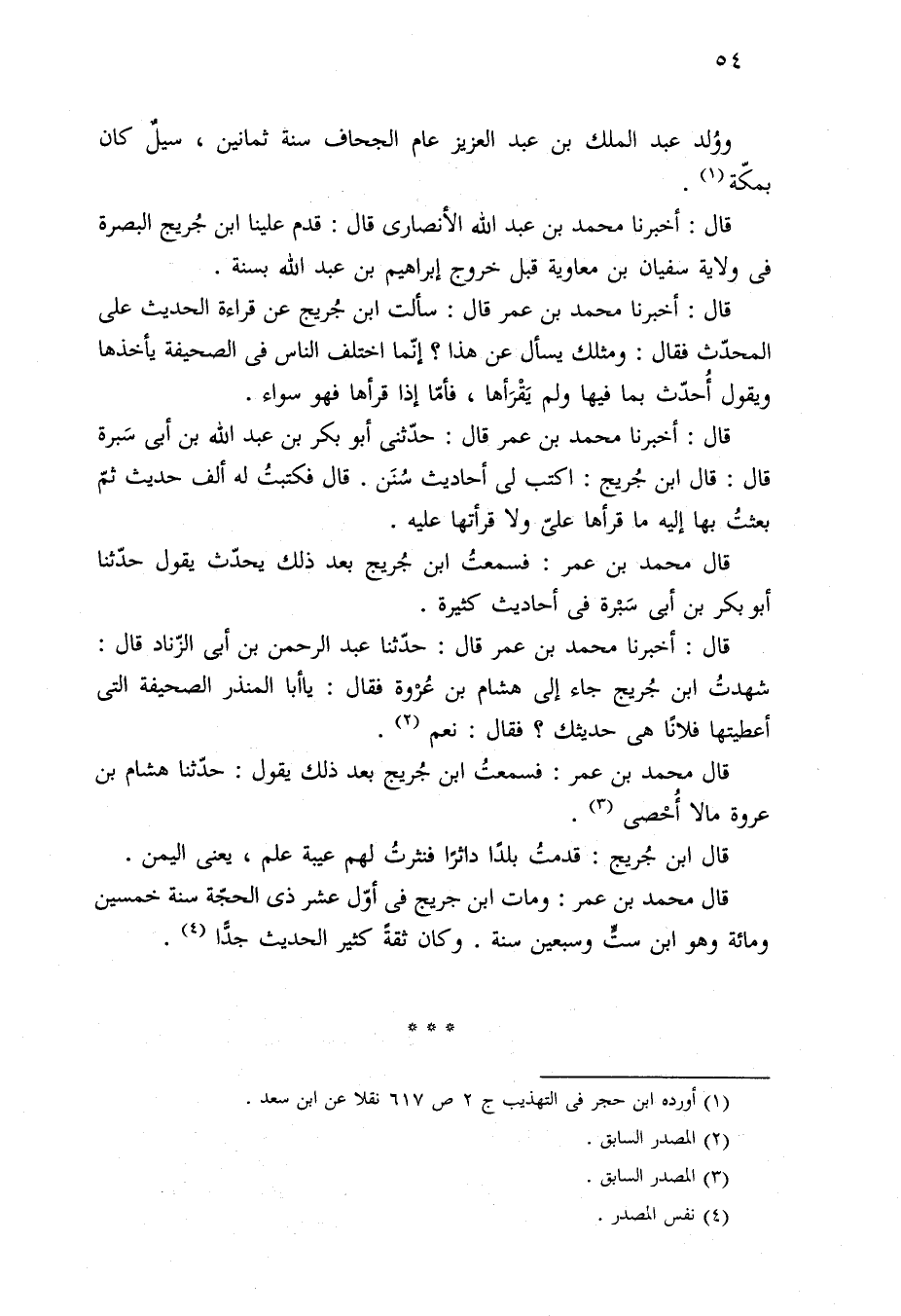 قال محمد بن عمر: ومات ابن جريج في أوّل عشر ذى الحجّة سنة خمسين ومائة وهو ابن ستٍّ وسبعين سنة. وكان ثقةً كثير الحديث جدًّا (¬٤).
