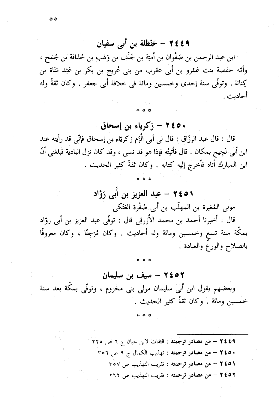 ٢٤٤٩ - من مصادر ترجمته: الثقات لابن حبان ج ٦ ص ٢٢٥