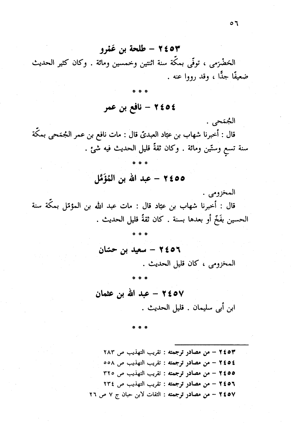 ٢٤٥٧ - من مصادر ترجمته: الثقات لابن حبان ج ٧ ص ٢٦