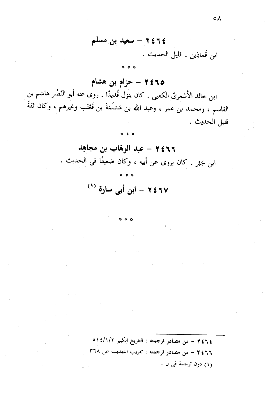 ٢٤٦٤ - من مصادر ترجمته: التاريخ الكبير ٢/ ١/ ٥١٤
