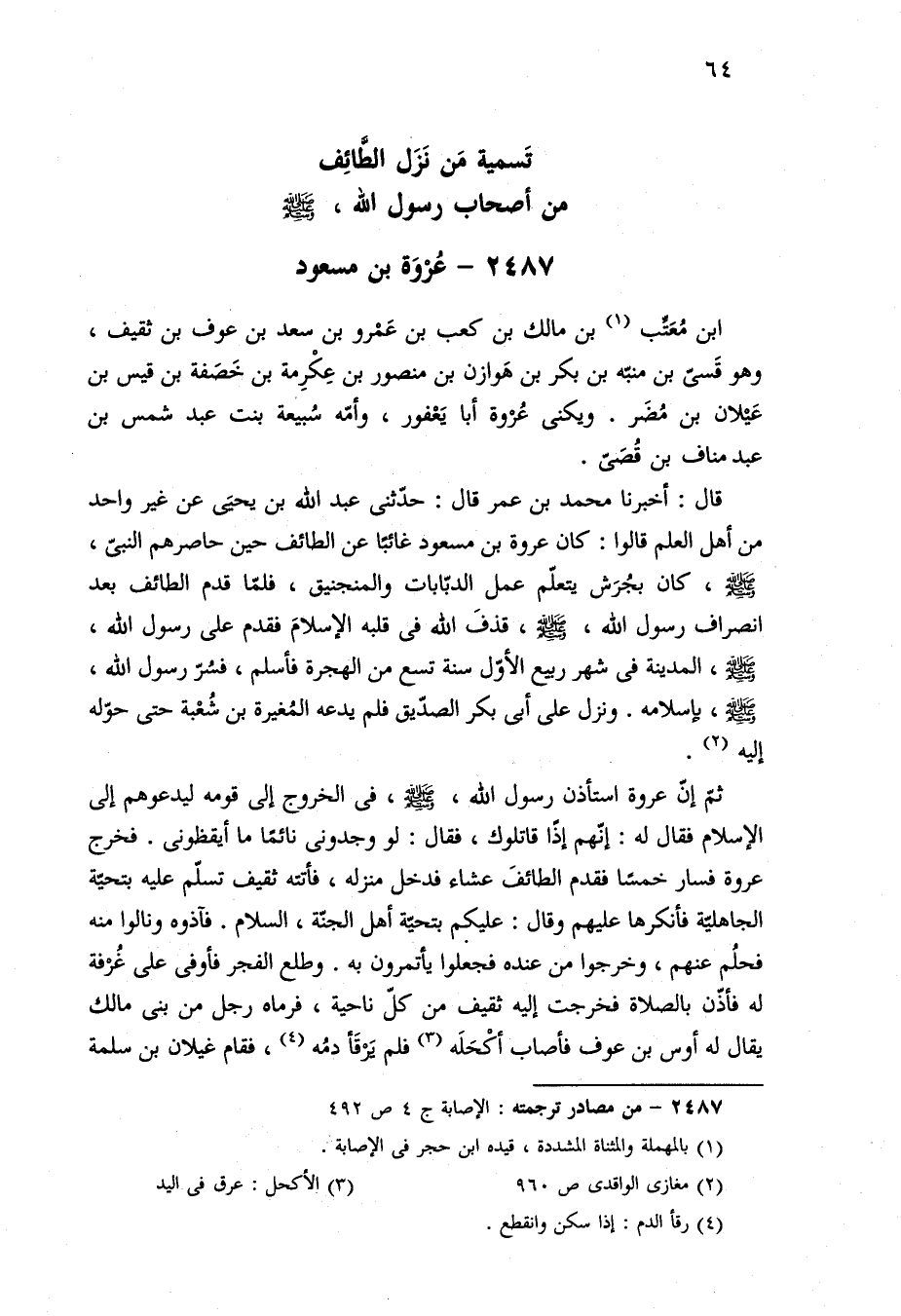 ٢٤٨٧ - من مصادر ترجمته: الإصابة ج ٤ ص ٤٩٢