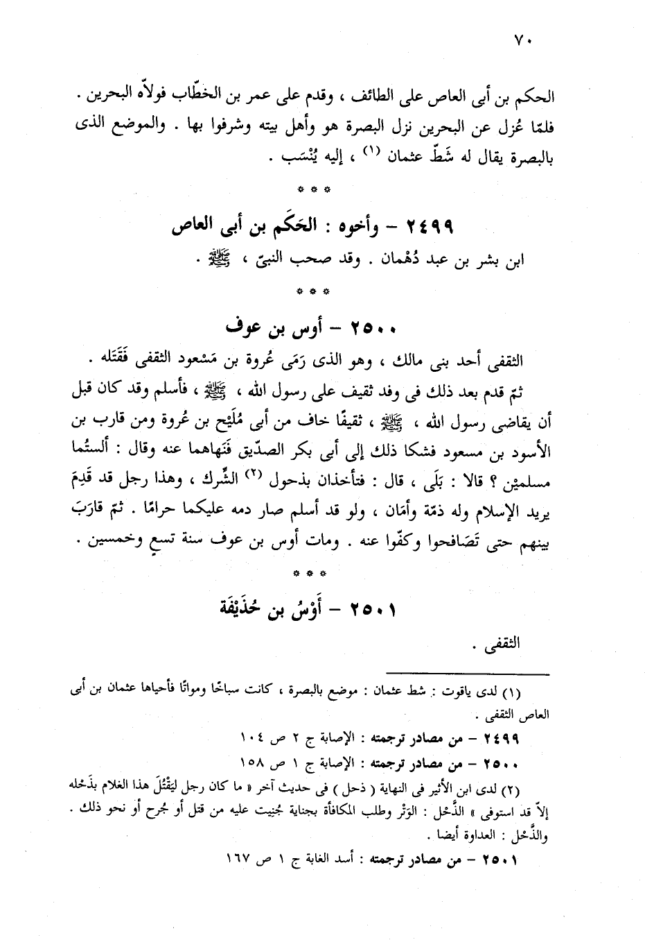 ٢٥٠٠ - من مصادر ترجمته: الإصابة ج ١ ص ١٥٨