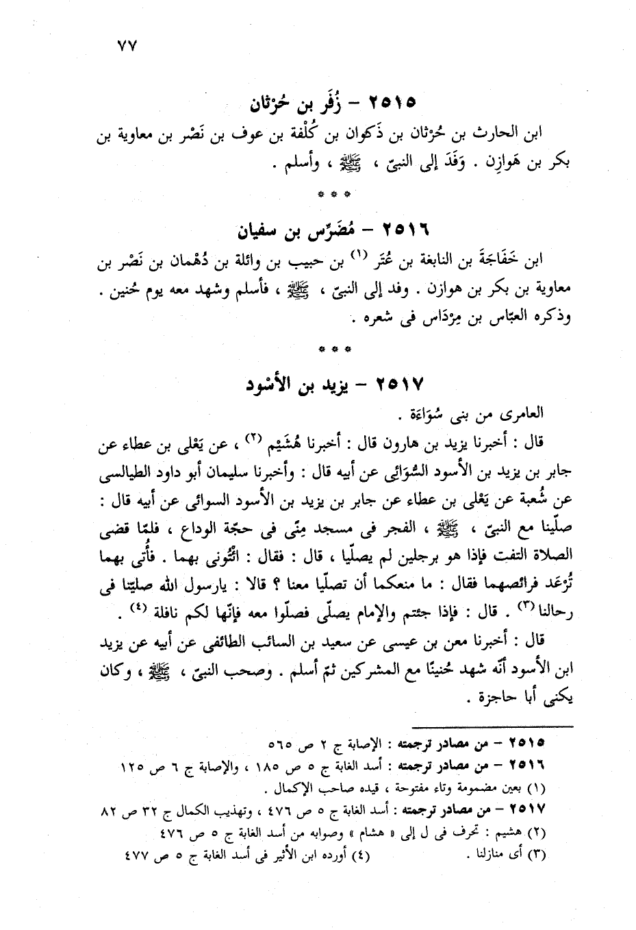 ٢٥١٥ - من مصادر ترجمته: الإصابة ج ٢ ص ٥٦٥