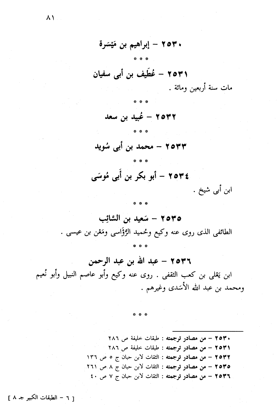 ٢٥٣٦ - من مصادر ترجمته: الثقات لابن حبان ج ٧ ص ٤٠