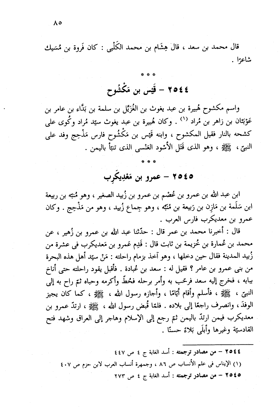 ٢٥٤٤ - من مصادر ترجمته: أسد الغابة ج ٤ ص ٤٤٧