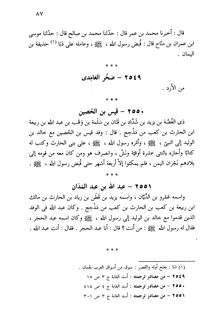 ٢٥٥٠ - من مصادر ترجمته: أسد الغابة ج ٤ ص ٤١٨