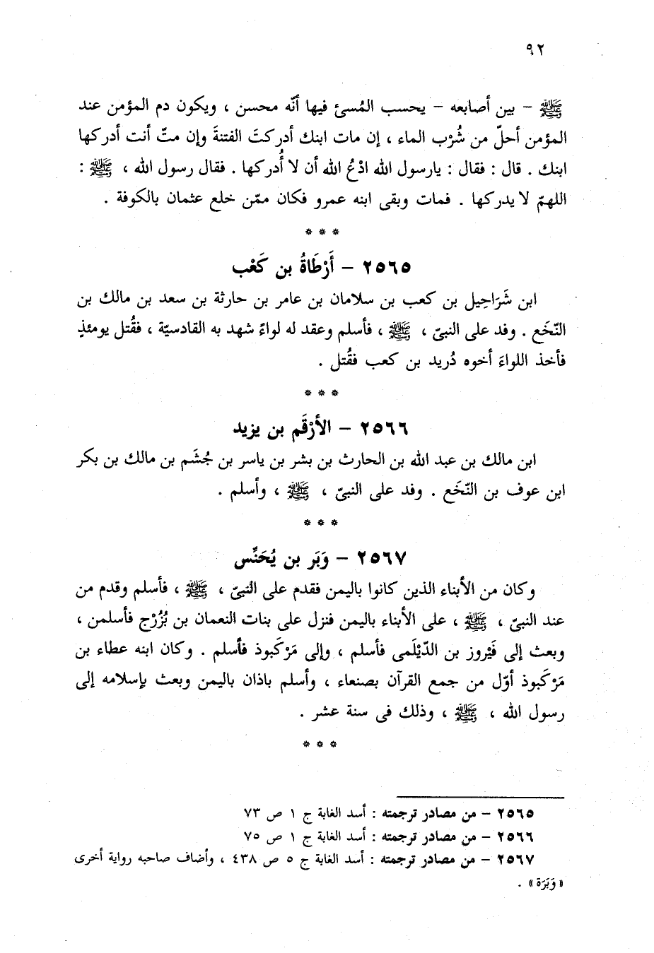 ٢٥٦٥ - من مصادر ترجمته: أسد الغابة ج ١ ص ٧٣