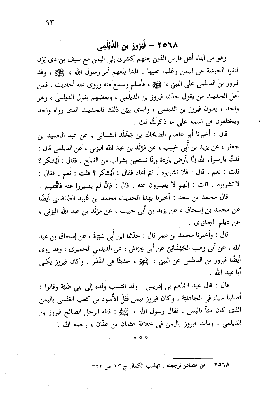 ٢٥٦٨ - من مصادر ترجمته: تهذيب الكمال ج ٢٣ ص ٣٢٢