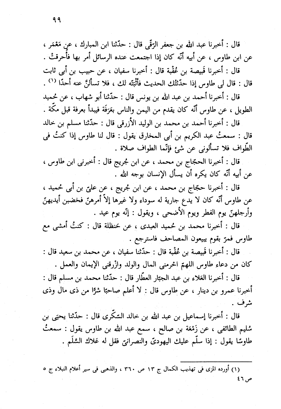 قال: أخبرنا الحجّاج بن محمد، عن ابن جُريج قال: أخبرني ابن طاوس، عن أبيه أنّه كان يكره أن يسأل الإنسان بوجه الله.