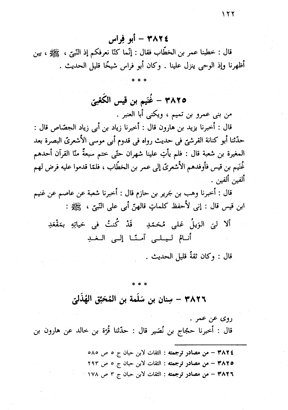٣٨٢٥ - من مصادر ترجمته: الثقات لابن حبان ج ٥ ص ٢٩٣.