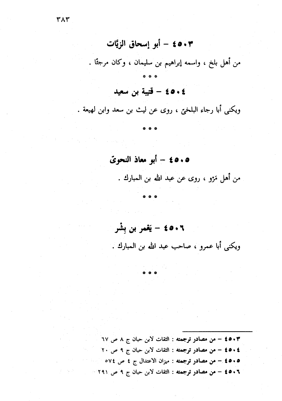 ٤٥٠٣ - من مصادر ترجمته: الثقات لابن حبان ج ٨ ص ٦٧
