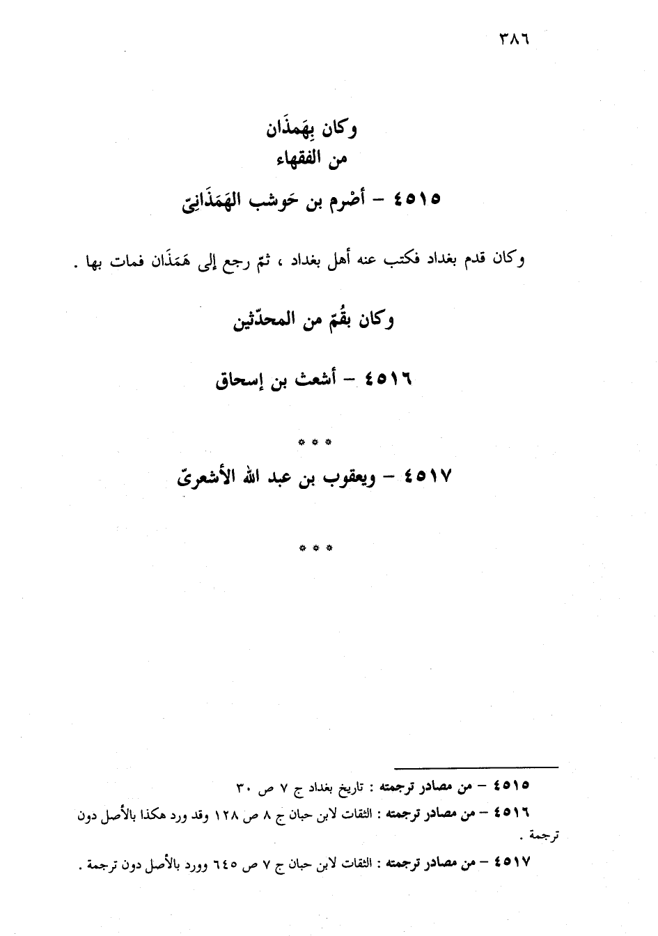 ٤٥١٥ - من مصادر ترجمته: تاريخ بغداد ج ٧ ص ٣٠