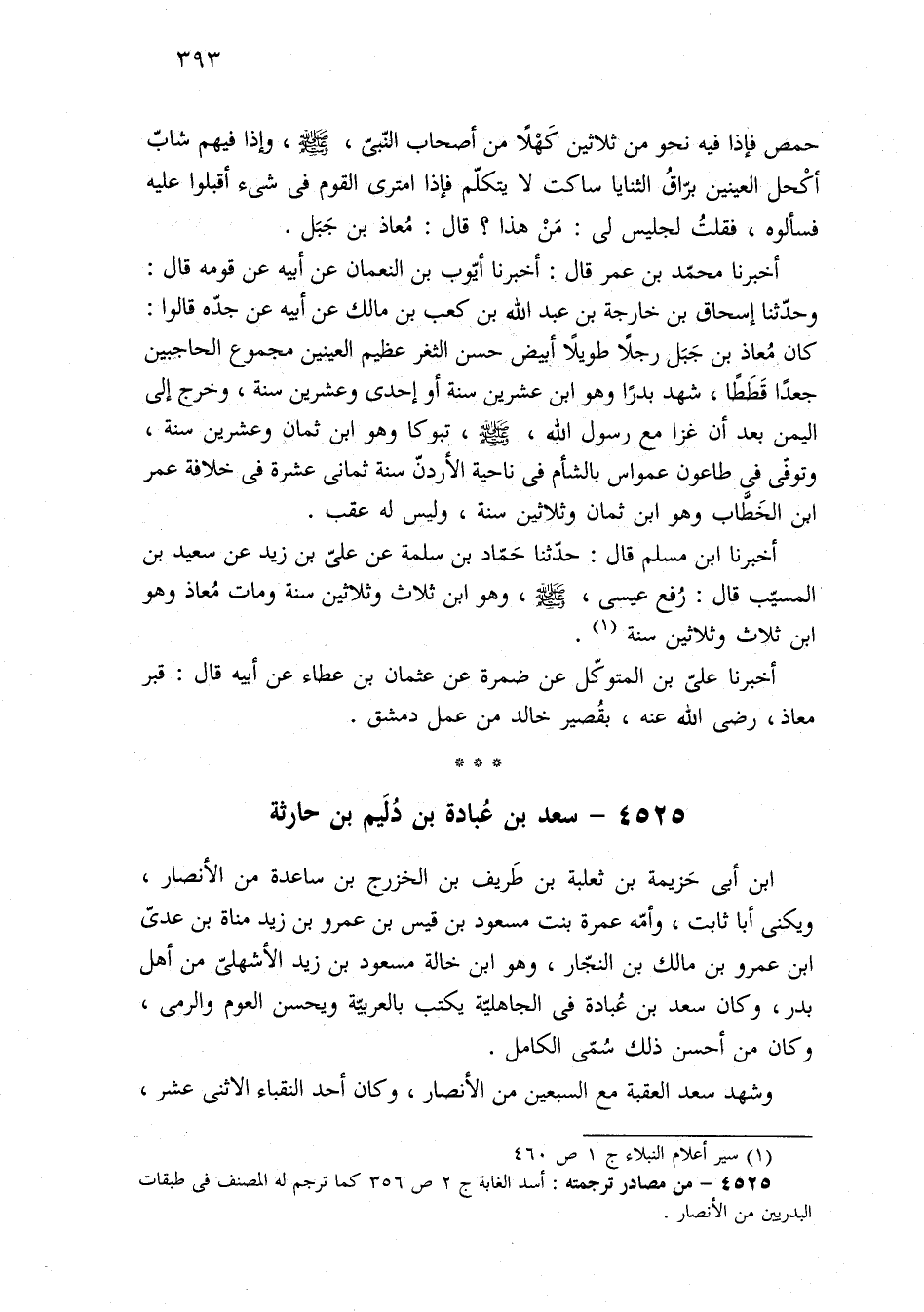 ٤٥٢٥ - من مصادر ترجمته: أسد الغابة ج ٢ ص ٣٥٦ كما ترجم له المصنف فى طبقات البدريين من الأنصار.