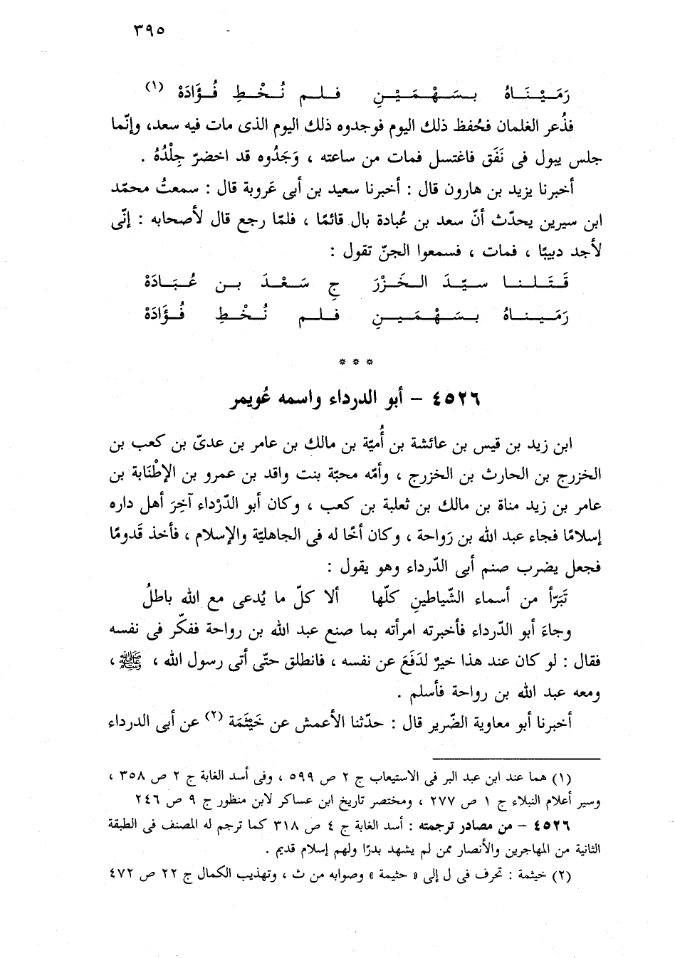 ٤٥٢٦ - من مصادر ترجمته: أسد الغابة ج ٤ ص ٣١٨ كما ترجم له المصنف فى الطقة الثانية من المهاجرين والأنصار ممن لم يشهد بدرًا ولهم إسلام قديم.