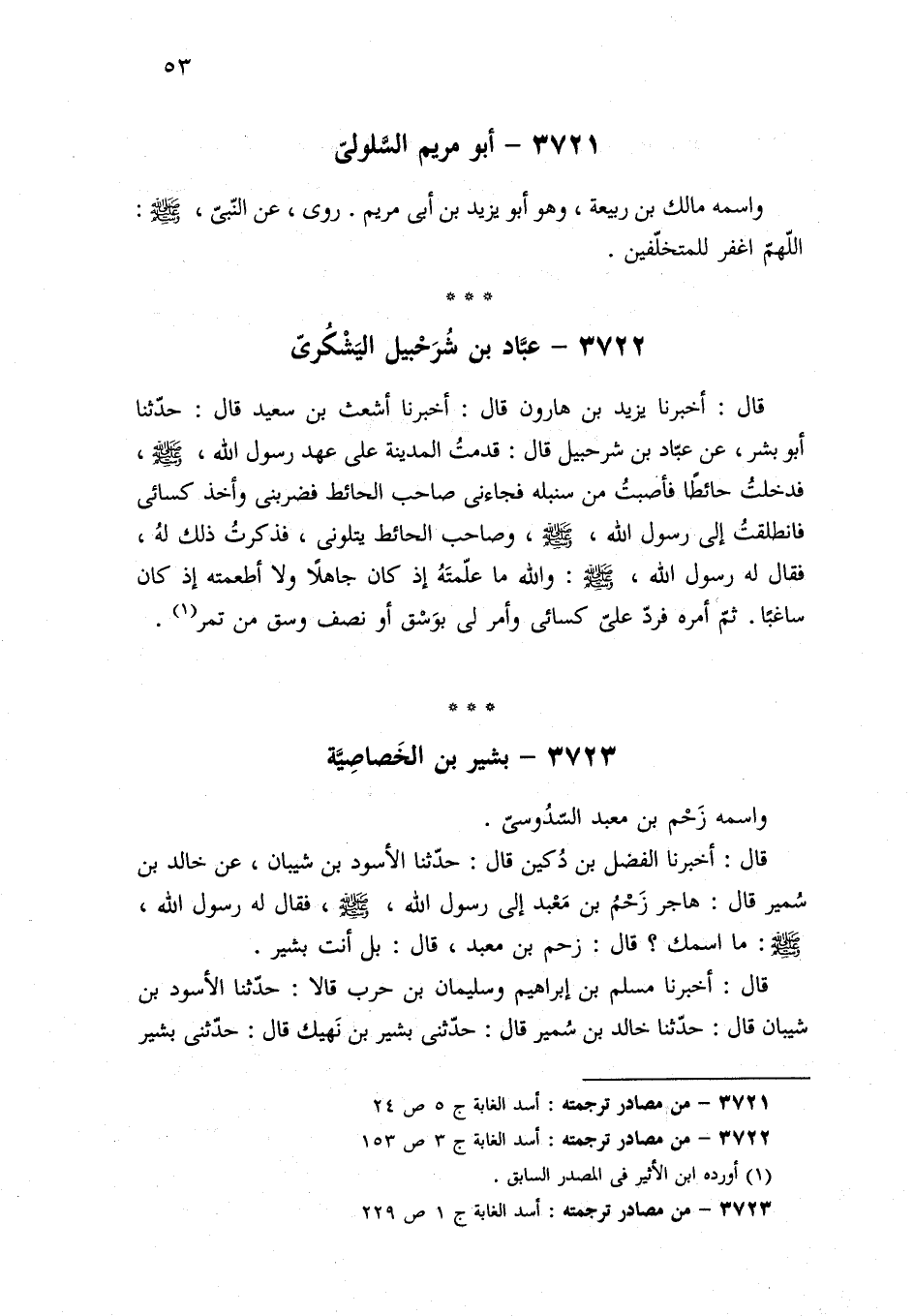 ٣٧٢٢ - من مصادر ترجمته: أسد الغابة ج ٣ ص ١٥٣.