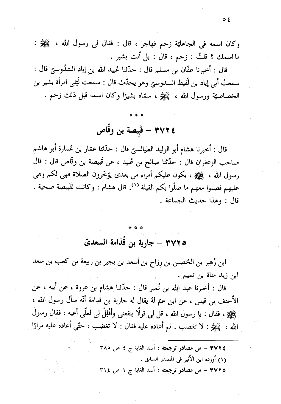 ٣٧٢٤ - من مصادر ترجمته: أسد الغابة ج ٤ ص ٣٨٥.