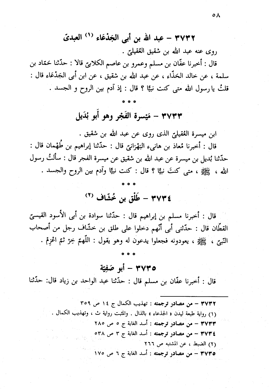 ٣٧٣٣ - من مصادر ترجمته: أسد الغابة ج ٥ ص ٢٨٥.