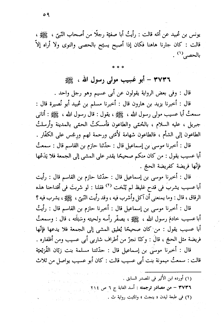 ٣٧٣٦ - من مصادر ترجمته: أسد الغابة ج ٦ ص ٢١٤.