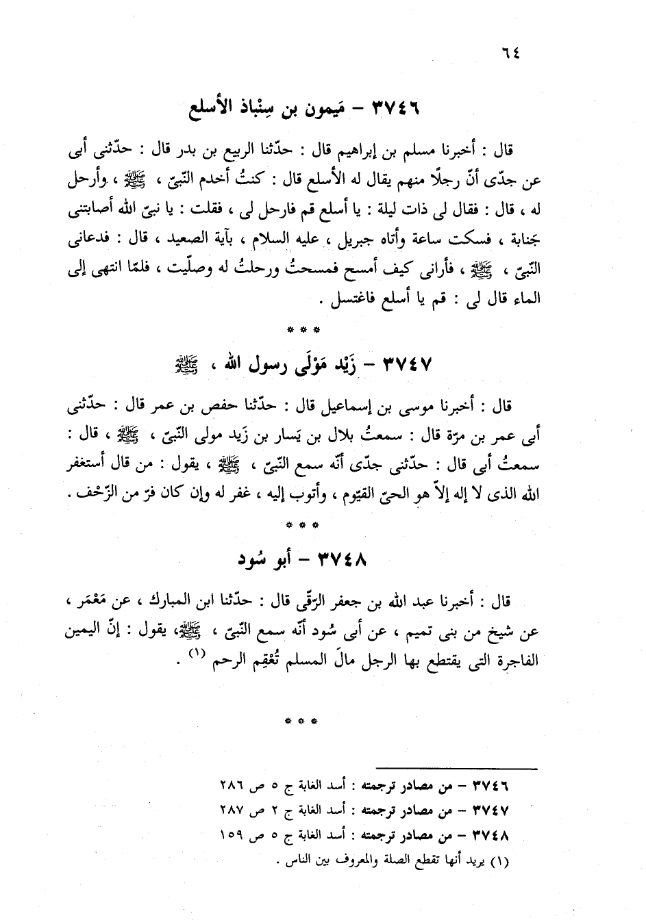 ٣٧٤٨ - من مصادر ترجمته: أسد الغابة ج ٥ ص ١٥٩.