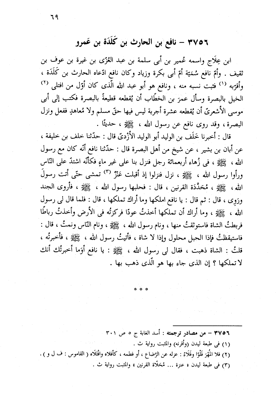 ٣٧٥٦ - من مصادر ترجمته: أسد الغابة ج ٥ ص ٣٠١.