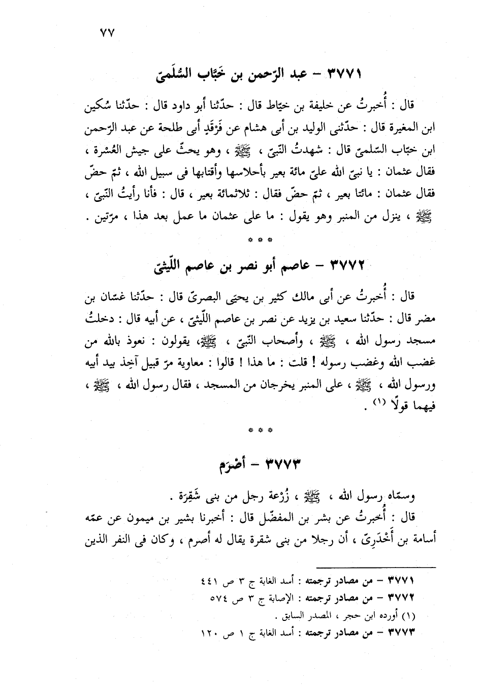 ٣٧٧١ - من مصادر ترجمته: أسد الغابة ج ٣ ص ٤٤١.
