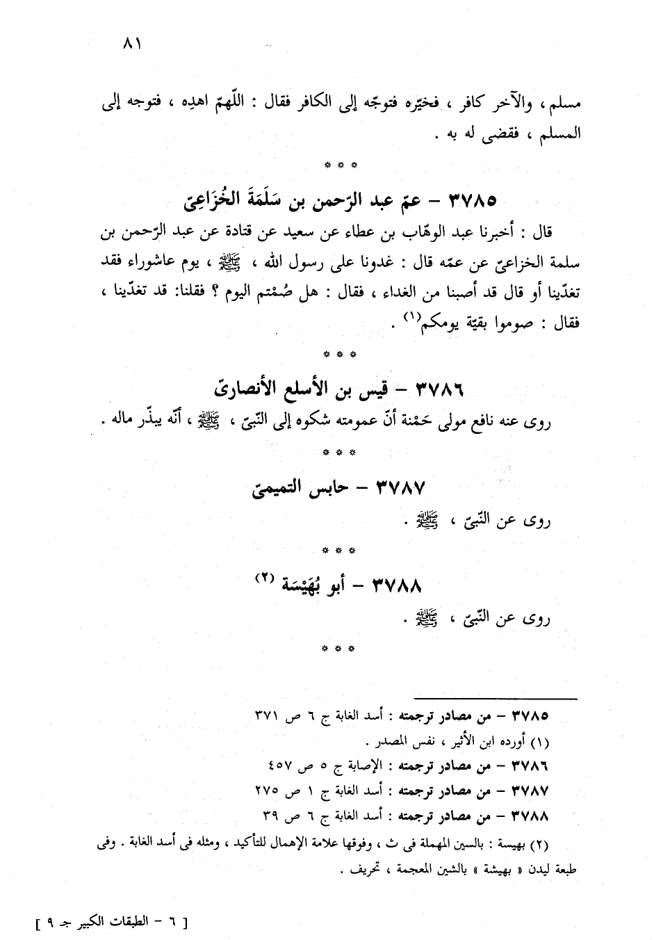 ٣٧٨٥ - من مصادر ترجمته: أسد الغابة ج ٦ ص ٣٧١.